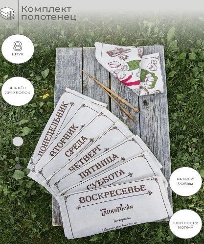 Комплект кухонных полотенец Рецепты недели 34х61 (8шт) п/лен п/вар наб 175448 Василиса