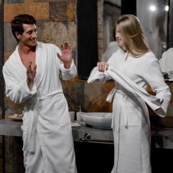 Такие халаты очень износостойки, а также быстро сохнут, поэтому рекомендованы к использованию не только в отелях, но и саунах, бассейнах, SPA.